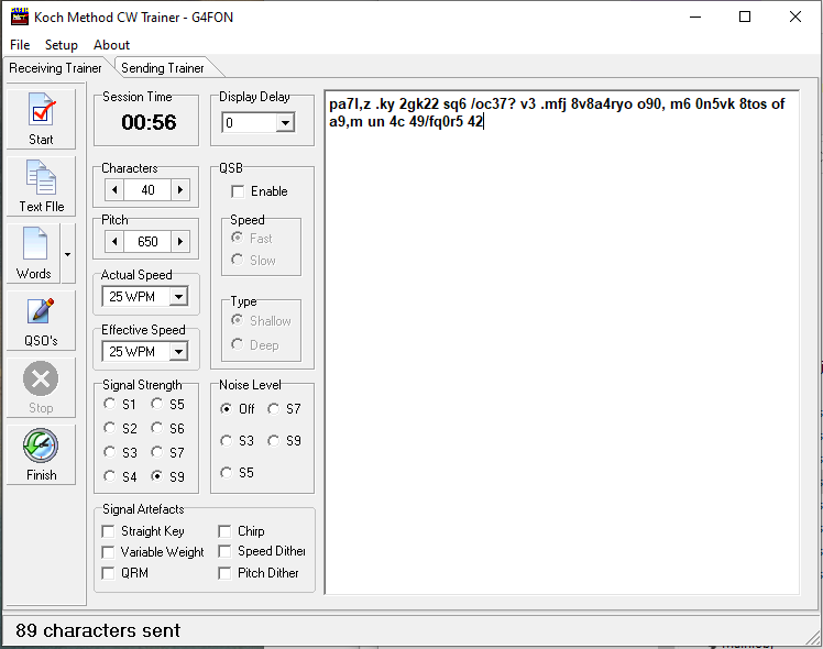 My philosophy in designing this addition to the software is firstly that words should be presented to you as closely as they would come into your head during a QSO and secondly that you should be using your radio's keyer for practicing as this replicates exactly how you would send Morse during a QSO.